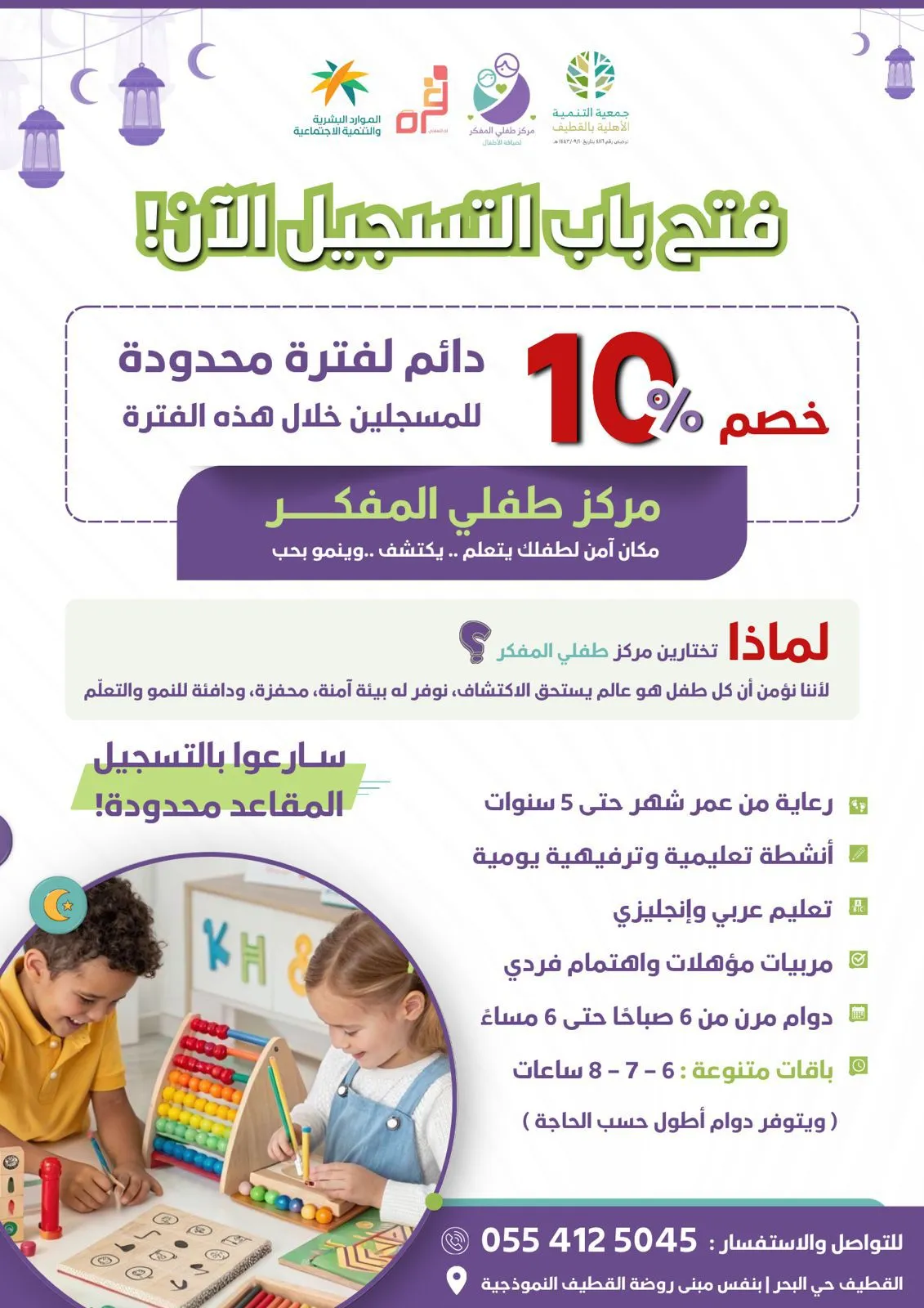 رمضان مع مركز طفلي المفكر… تعلم بروح دافئة وخير ينمو مع أطفالنا.. خصم 10٪ للمسجلين الجدد خلال شهر الخير